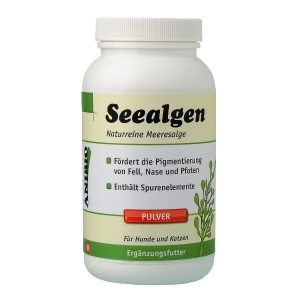 Suplemento alimenticio "Algas marinas" de Anibio. Producto natural fabricado a partir de alga seca y molida. Favorece la pigmentación y ayuda a la digestión aumentando el aprovechamiento del alimento. Administrar espolvoreando el polvo sobre la comida.