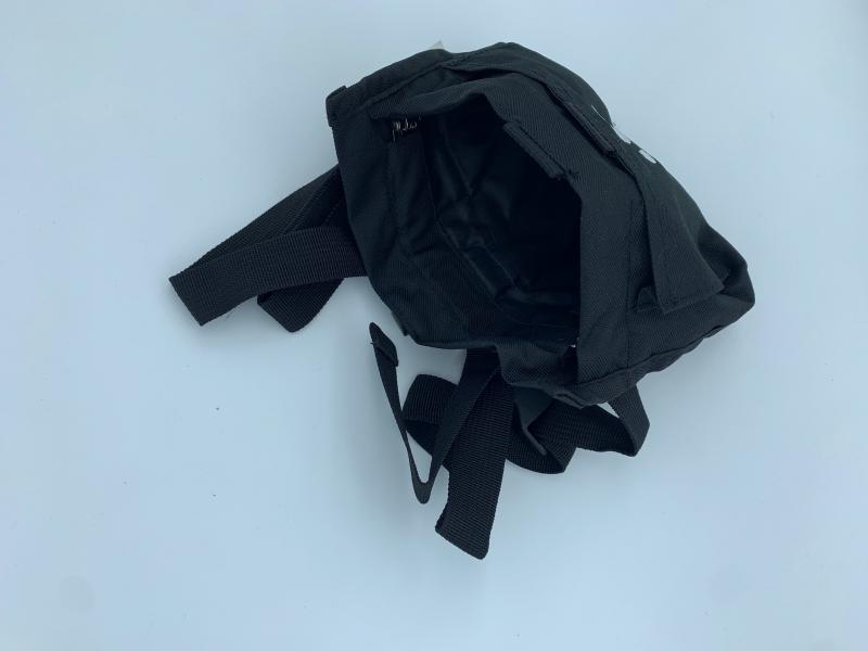 Incorpora un cinturón extraíble y ajustable. Además tiene un clip para poder engancharlo al cinturón o al pantalón. Además tiene una anilla en la que poder acoplar un clicker, un silbato, etc.