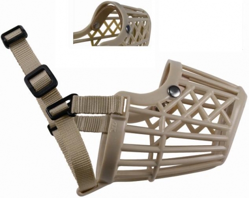 Bozal para perros de cesta fabricada en plástico con correa ajustable de nylon y cierre fácil de click. Para perros agresivos, visitas al veterinario, peluquería, etc. Varios tamaños disponibles.