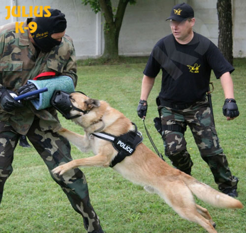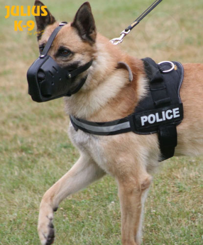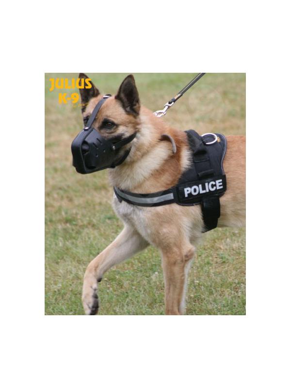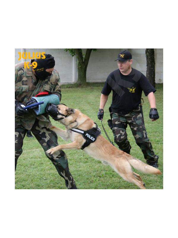 Bozal de impacto policial para perros. Fabricado en cuero con la punta reforzada en metal. Para el entrenamiento de perros de defensa. Uso exclusivo profesional.