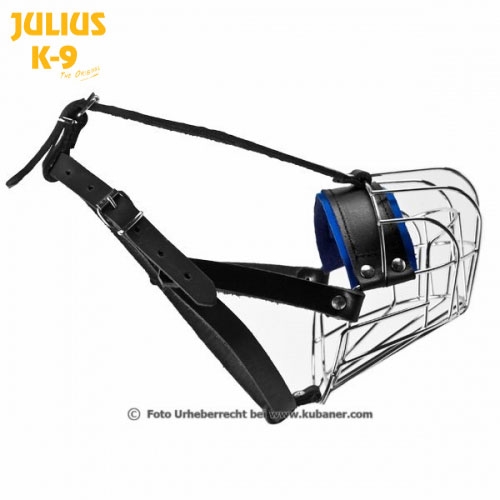 Bozal para perro boxer con la cesta de metal y la correas de cuero. Cinta con cierre de hebilla ajustable a la cabeza de perro. Varios tamaños disponibles.