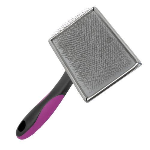 Carda con púas protegidas de la marca Ibañez, ideal para desenredar el pelo de manera suave.Es un producto excelente para mantener en buenas condiciones el pelaje de tu perro, sobre todo los animales de pelo rizado.Aunque sus dientes son metálicos, cada punta está protegida con una bolita nacarada para así no lastimar la piel de tu perro. Pásala en el sentido del pelo de tu mascota para desenredar y quitar materiales indeseados allí alojados. Después pásala a contrapelo para lograr mayor volumen en el manto.Ideal para el peinado de mantos largos, lisos o sedosos.Con mango ergonómico para un uso sencillo y cómodo, decorado con goma morada para una suavidad al tacto total.La carda con púas protegidas está disponible en varios tamaños para adaptarse al uso en cualquier tipo de perro.Tamaños disponibles: