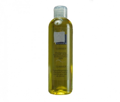 Champú "Summer" para perros de la marca Diamex. Alivia el escozor de las picaduras de insectos. Apto para todo tipo de perros. Disponible en varios tamaños.