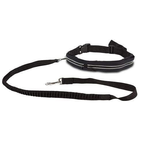 El equipo de jogging contiene un cinturón ajustable y una correa flexible anti-tirones que se acopla al cinturón.