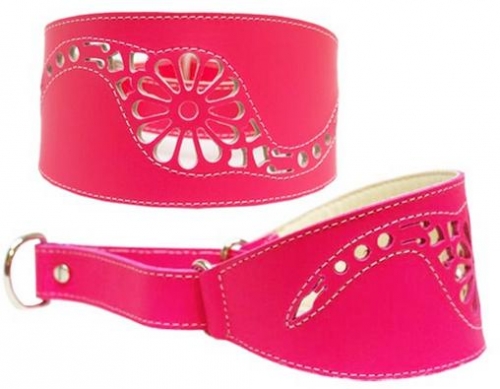 Collar de cuero martingale para galgos. Con decoración artesanal fabricado en piel. Con sistema Martingale para perros de cuello fino, evita que se les salga el collar por la cabeza.