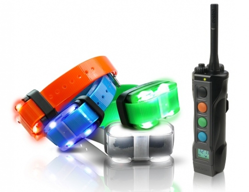 Además el equipo puede ampliarse con collares adicionales para poder controlar hasta 4 perros con un mismo mando, los collares siguen un código de colores para hacer su uso más fácil:
