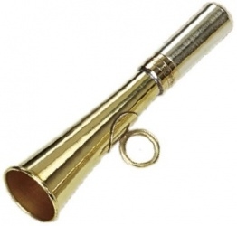 Corneta fabricada en latón bronceado muy ligera y pequeña con tan sólo 12 cm de longitud.