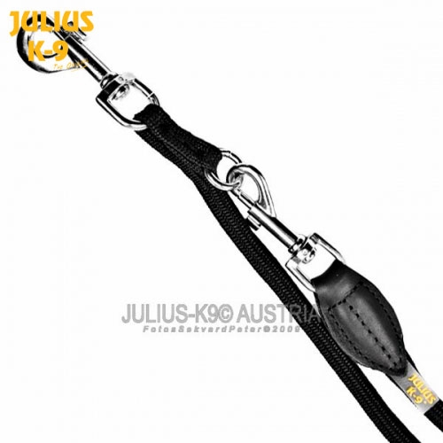 Correa ramal de policía de nylon redondo de la marca Julius K9. Ideal para el adiestramiento y el paseo. Longitud de 2.20 metros.Con doble mosquetón para conseguir diferentes posiciones de la correa. Disponible en color negro.