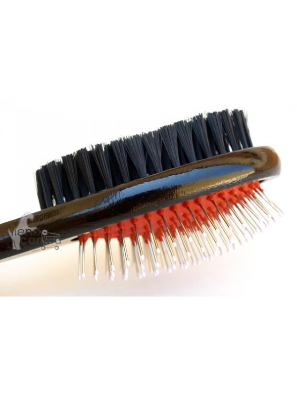 | Corto y doble (capa superior recto y grueso, bajo pelo suave y fino) | Labrador Retriever, Golden Retriever, Pastor Alemán, Rottweiler | 2 veces a la semana | Carda metálica, peine de apertura media, peine rastrillo metálico para el bajo-pelo, carda cortante para alisar, hoja de escurrimiento para quitar el pelo muerto |
