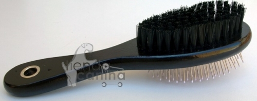 | Largo y espeso (capa superior larga y gruesa, bajo-pelo fino y ligero) | Lhasa-Apso, Shih Tzu | 3-4 veces a la semana | Carda metálica, peine de apertura media, carda cortante quita-nudos |
