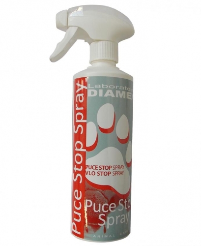 Spray Puce Stop de Diamex para perros. Diseñado para ahuyentar las pulgas del perro de manera instantánea. Disminuye las irritaciones cutáneas. Disponible en bote de 500 mL.