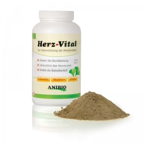 Suplemento alimenticio Corazón Vital de Anibio. Optimiza el rendimiento del músculo cardiaco y mejora la circulación. Recomendado también para perros de alto rendimiento. Con L-Carnitina y Ginkgo.