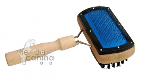 | Corto y doble (capa superior recto y grueso, bajo pelo suave y fino) | Labrador Retriever, Golden Retriever, Pastor Alemán, Rottweiler | 2 veces a la semana | Carda metálica, peine de apertura media, peine rastrillo metálico para el bajo-pelo, carda cortante para alisar, hoja de escurrimiento para quitar el pelo muerto |