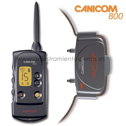 Collar Canicom 800 de adiestramiento con mando de pantalla LCD para perros, con 800 metros de alcance. Equipo de 1 mando con 1 collar, el mando puede llevar hasta 2 collares (disponibles en opcion).