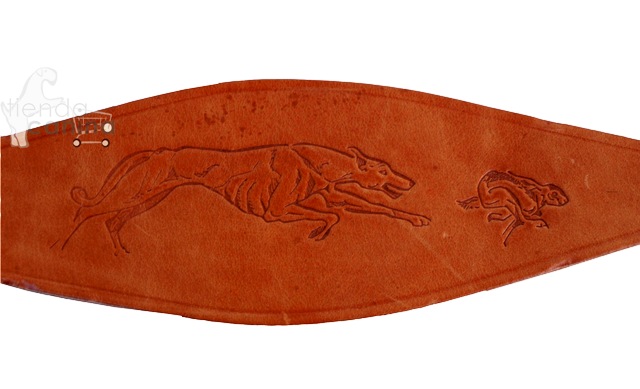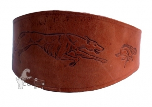 Collar de cuero natural grabado artesano para galgo, podencos y perros de cuello fino con doble cuero y con motivo grabado.