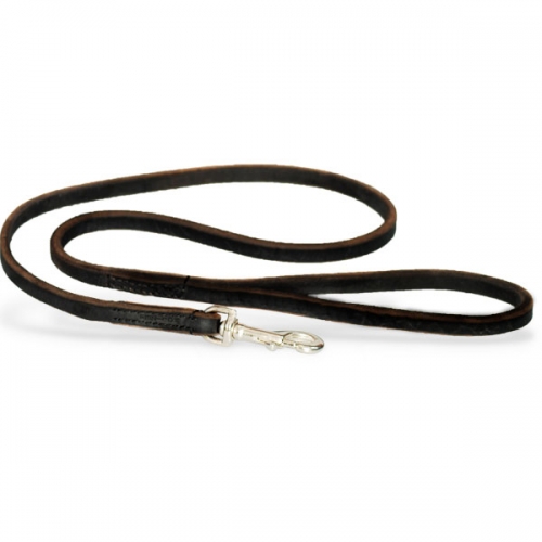 Correa de cuero plano trenzada natural de excelente calidad, totalmente hecha a mano, con un tacto suave y agradable y un mosquetón de excelente calidad. Para paseo y adiestramiento de perros de tallas desde pequeños hasta muy grandes. Largo 1.2m.