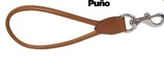 Correa de cuero redondo en forma de puño o en versión larga. Ideal para el adiestramiento o paseo de perros que sean difíciles de controlar. Disponible en modelo de puño o largo de 90 y 105cm. Disponible en color marrón o beige.