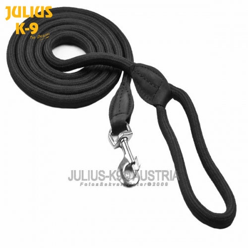 Correa de nylon redondo de excelente calidad de la prestigiosa marca Julius K9. Con mosquetón para un mejor enganche al collar del perro y con asa para un mejor agarre y control del perro en caso de tirón. Perfecta tanto para el paseo como para el adiestramiento del perro. Disponible en color negro y en longitudes de 1,2 y 2m.