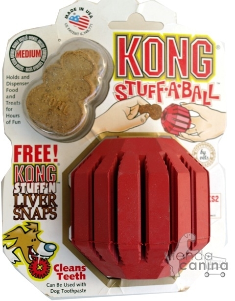 Juguete Kong Stuff-a-Ball educativo y de entretenimiento. Divertido juguete con ranuras que mantendrá entretenido a tu perro durante tu ausencia.