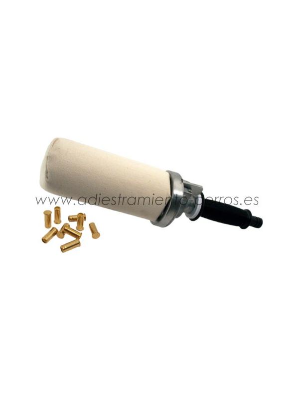 Lanzador de señuelos para el entrenamiento de perros de muestra, retriever y springer. Incorpora un señuelo de lona.