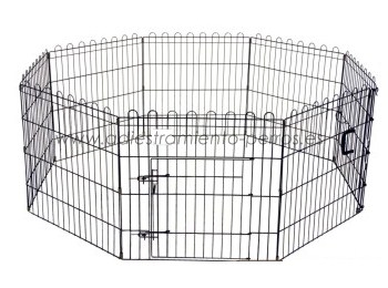 Parque plegable metálico de 8 paneles, ideal para cachorros o para que su perro tenga un espacio donde jugar sin tener acceso a todo el jardin o la casa.